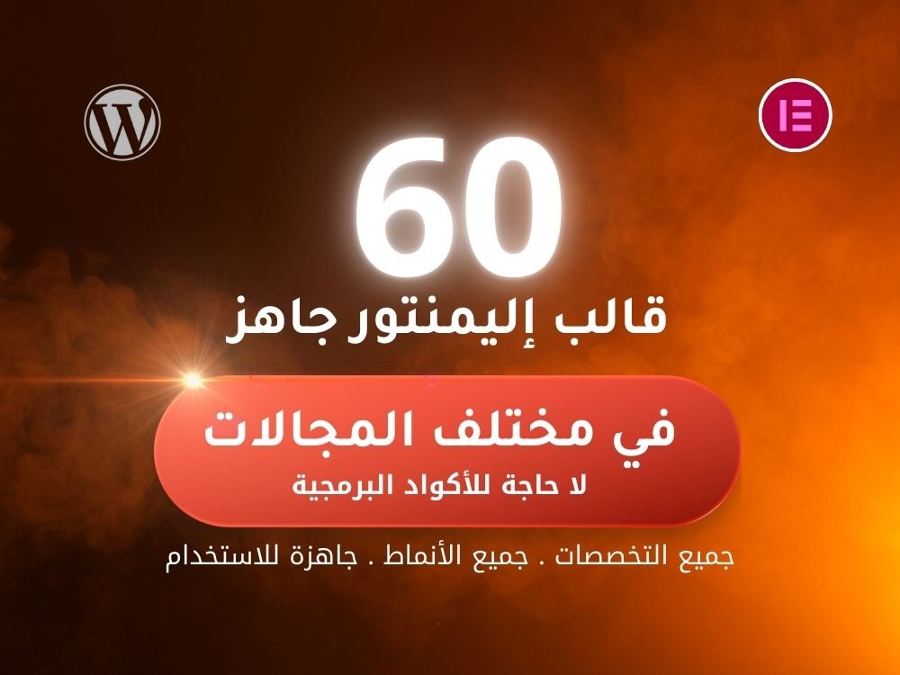 أنشئ مواقع ويب احترافية خلال دقائق مع باقة قوالب Elementor الجاهزة – 60 قالب احترافي ، الحل المثالي لأصحاب المتاجر الرقمية، المصممين، المستقلين، وأصحاب المشاريع الذين يرغبون في تصميم مواقع ووردبريس جذابة بدون أي خبرة برمجية.